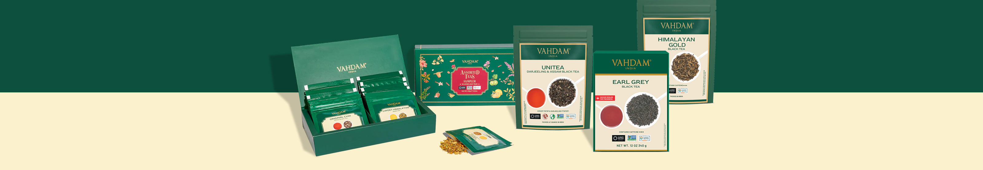 Immerse yourself in the world of premium loose-leaf tea with VAHDAM India's collection. Experience the purest flavors and aromas of handpicked teas, carefully curated for a unique experience with every sip.